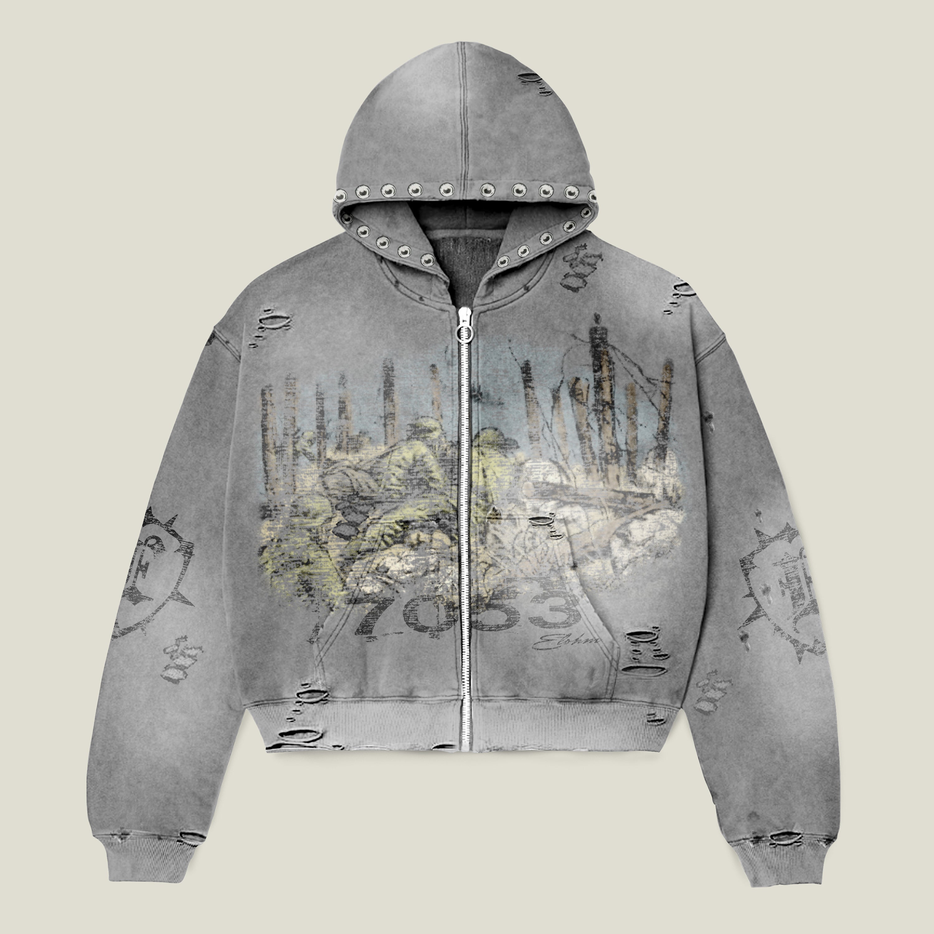 Streetwear Patched Zip-Up Hoodie