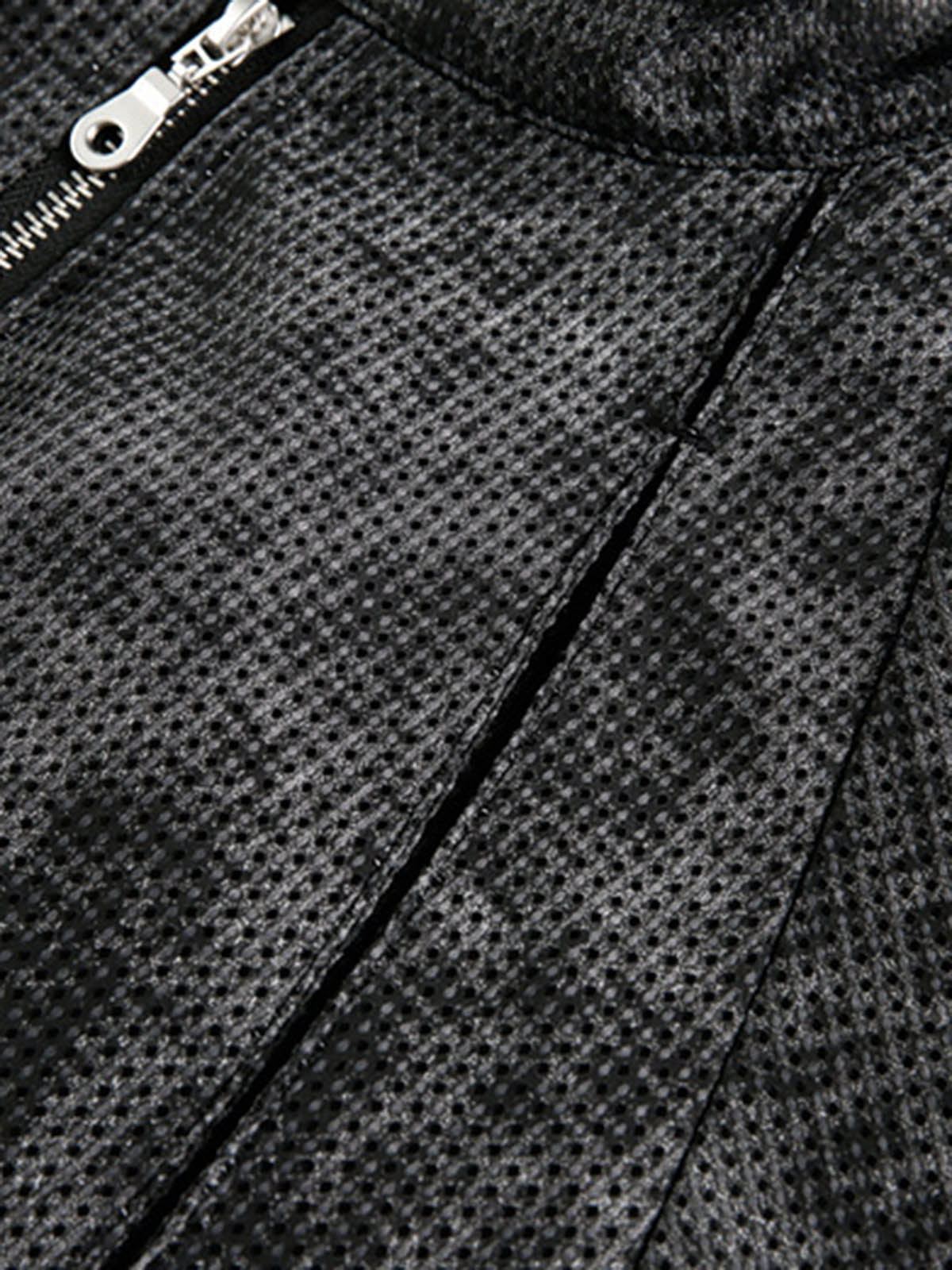 ? Design Elements: Camouflage pattern, ribbed cuffs and hem, front zipper closure